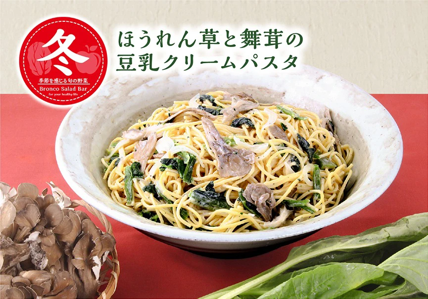旬のほうれん草と香りの良い舞茸が楽しめるパスタです。